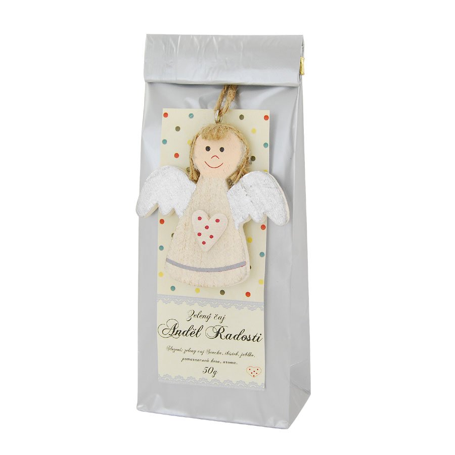 Dárkový čaj s dekorací anděla.