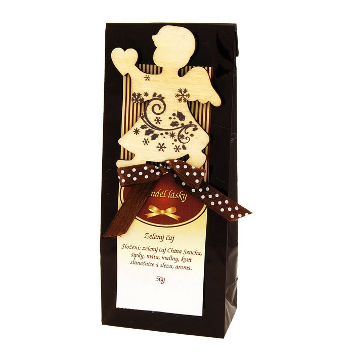 Dárkový čaj s dekorací andílka.