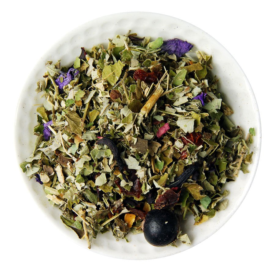 Složení: listy ostružiny a maliny, šípek, ibišek květ, černý rybíz, aroma, sléz květ, černá jeřabina