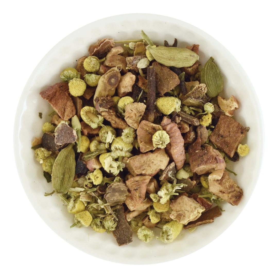 Složení: kousky jablka, květy heřmánku, kousky rohovníku, listy kopřivy, skořice, muškátový oříšek, zázvor, hřebíček, kardamom, anýz, přírodní aroma