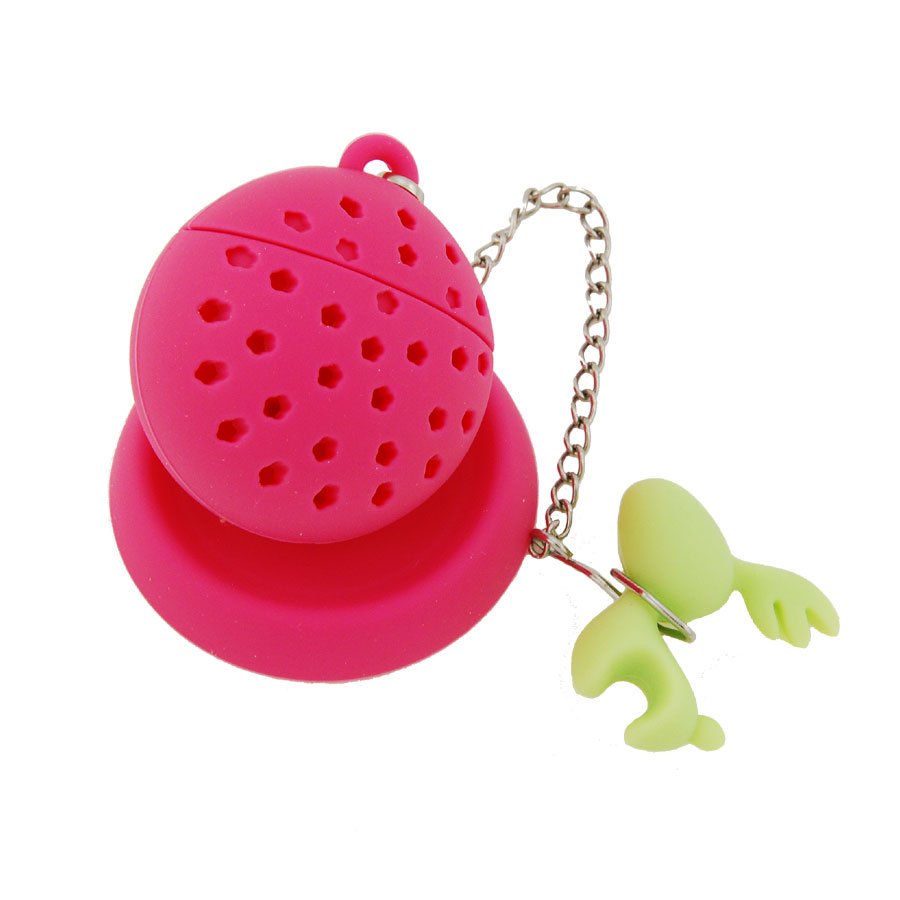 Čajové cedítko v kombinaci silikonu a nerezu. Cedítko je ve více barvách, ve tvaru malého Sobíka s kuličkou přivázanou k Sobíkovi a s malým silikonovým talířkem na odložení.