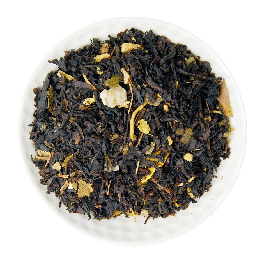 Složení: černý čaj China OP, aroma, kousky papáje, kousky ananasu, ženšen, ginkgo, květy slunečnice