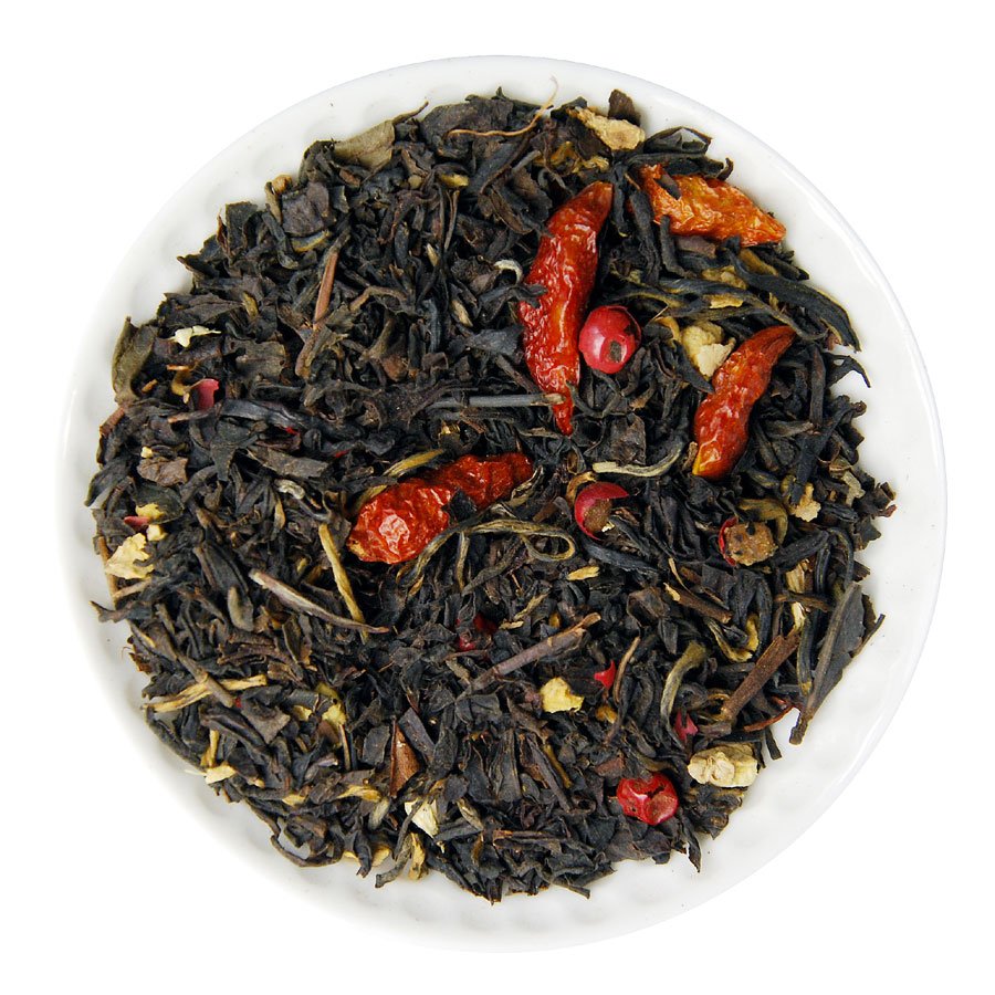 Složení: černý čaj China OP a Nilgiri FOP, zázvor (min. 12%), červené koření, chilli papričky (min. 4%)