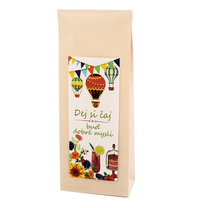 Dárkový čaj balený v růžovem sáčku. Text: Dej si čaj a buď dobré… Více