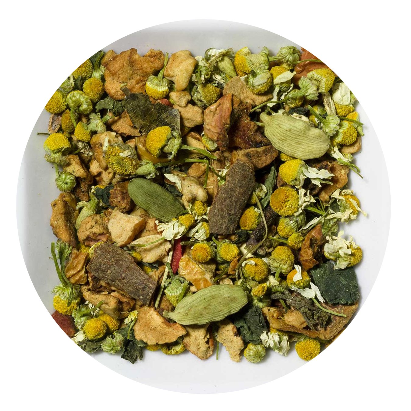 Složení: kousky jablka, květy heřmánku, kousky rohovníku, listy kopřivy, skořice, muškátový oříšek, zázvor, hřebíček, kardamom, anýz, přírodní aroma