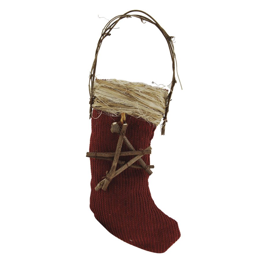 Vánoční ponožka, textilní s dřevěnou dekorací