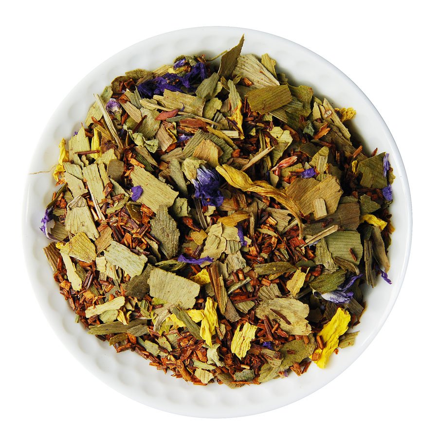 Složení: Rooibos (min. 60%), Ginkgo (min. 24%), květy slézu a slunečnice, papája, zázvor, aroma