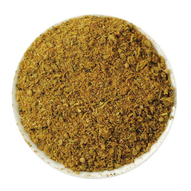 Složení: sůl 15 %, hořčice, pepř, česnek, cibule, rajčata, koriandr, paprika, rozmarýn, muškátový květ, oregáno, saturejka, zvýrazňovač chuti E621.
