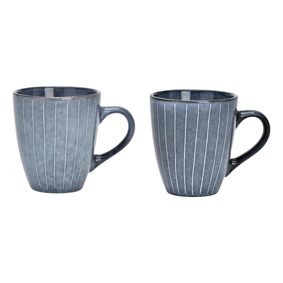 Kameninový hrníček v modrém provedení s bílými proužky (2 druhy).