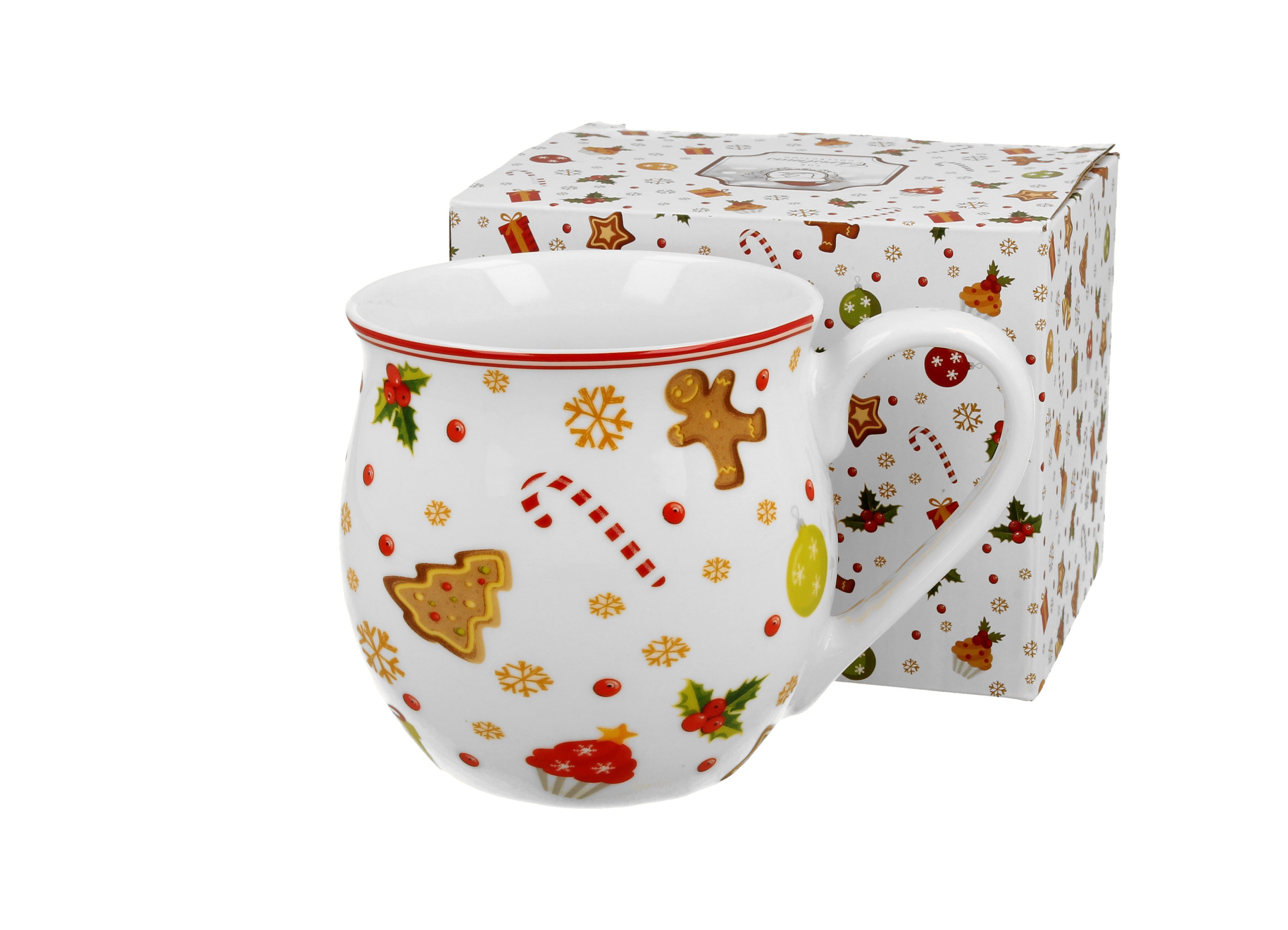 Klasický hrnek s tradičním motivem barevných vánočních ozdob a sladkostí, který se perfektně hodí na každý stůl.