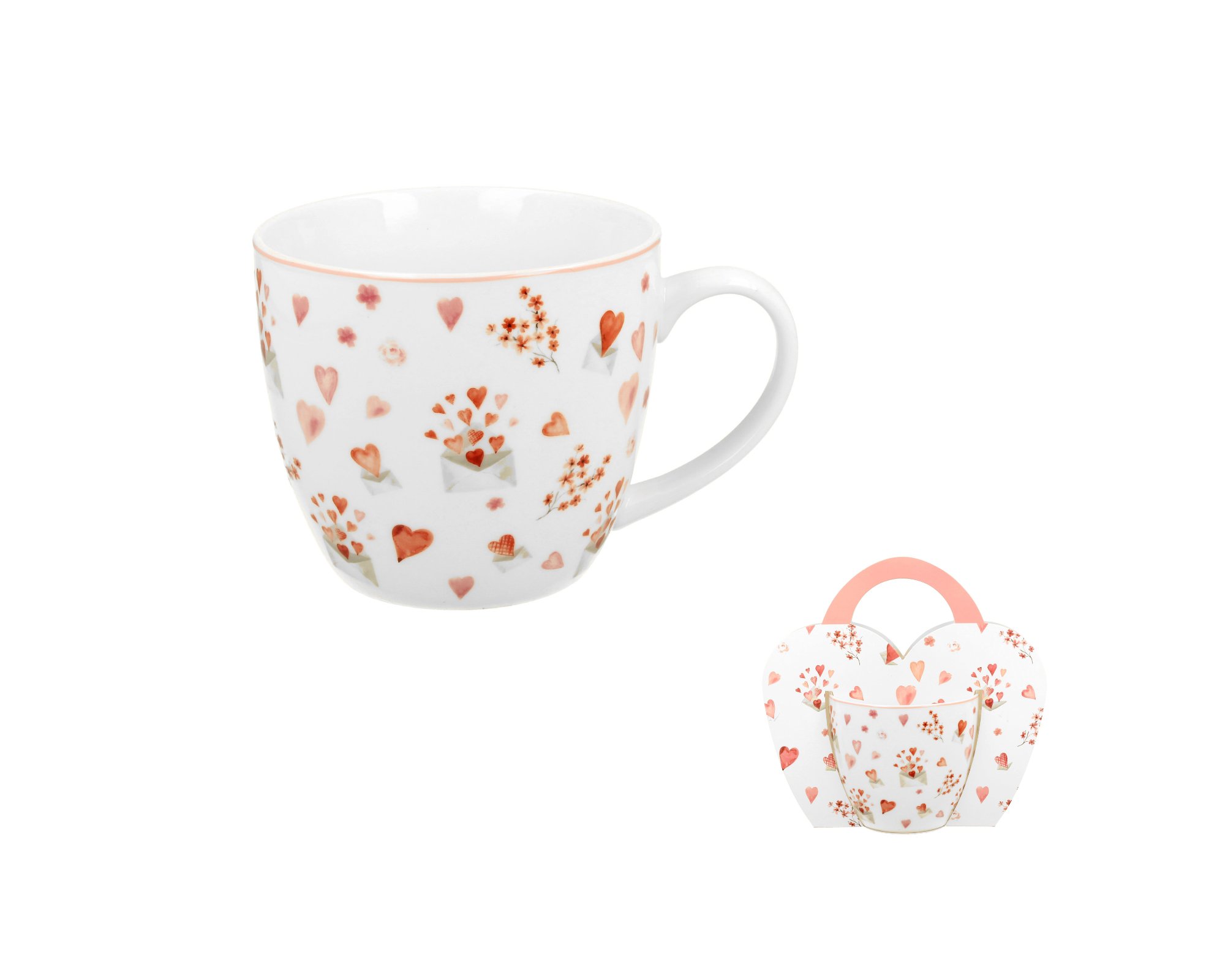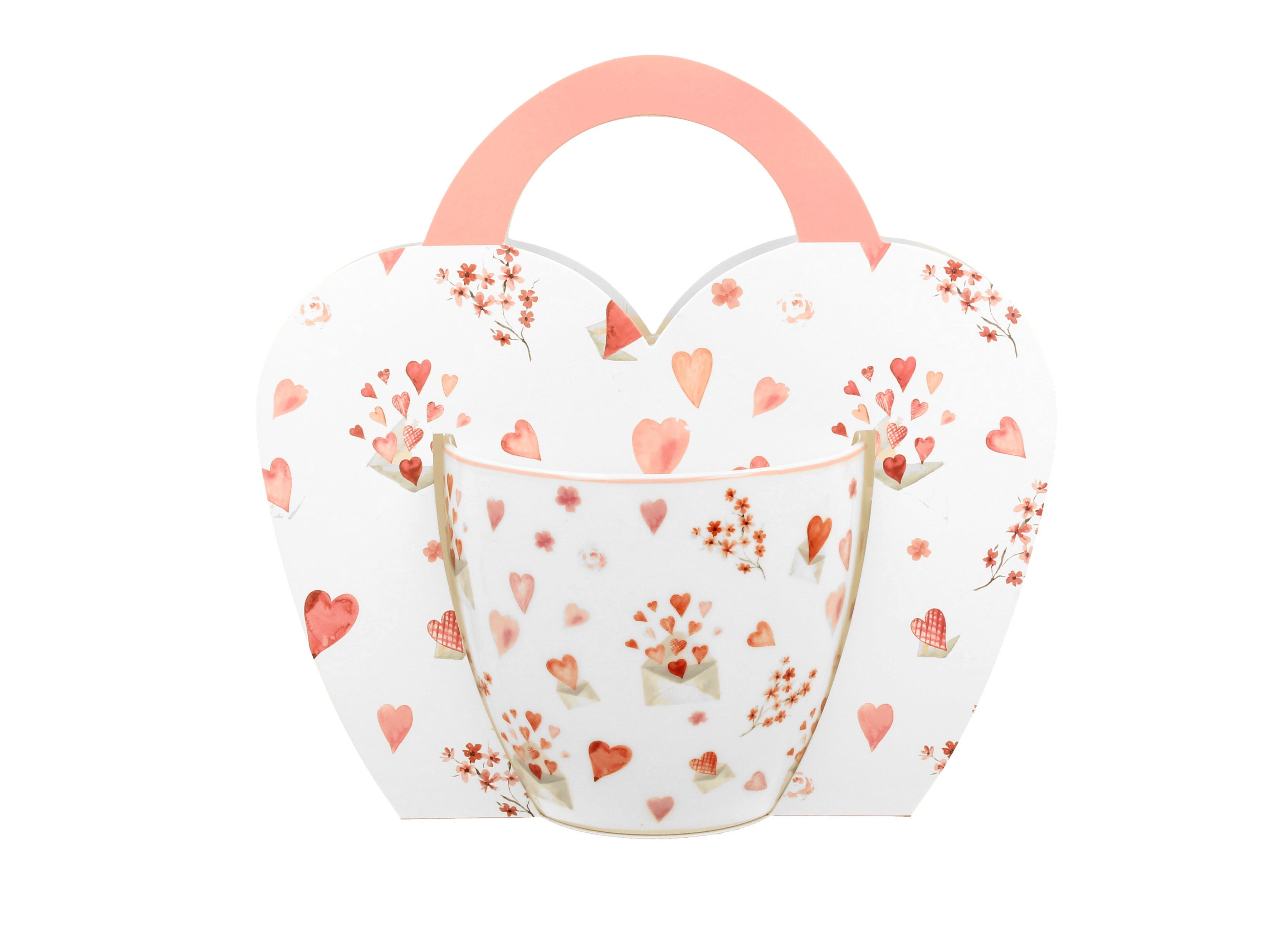 Klasický hrnek s valentýnským motivem otevřených obálek s jemnými srdíčky a kyticemi zabalený v originálním papírovém obalu s uchem se stejným motivem. S tímto hrníčkem dostanou rána u kávy nebo večery s čajem nový, romantický rozměr.