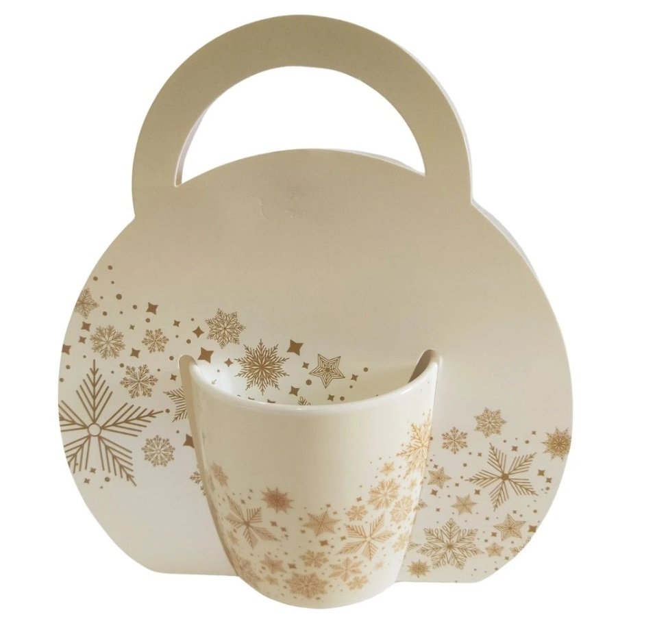 Praktický porcelánový hrnek s decentním motivem zlatých sněhových vloček pro všechny, kdo si rádi vychutnají dobrý čaj či kávu z kvalitního porcelánu a přispěje k hezkému stolováni i k vánoční výzdobě. Zabalený v originálním obalu s uchem se stejným motivem je skvělým dárkem nejen pod vánoční stromeček.