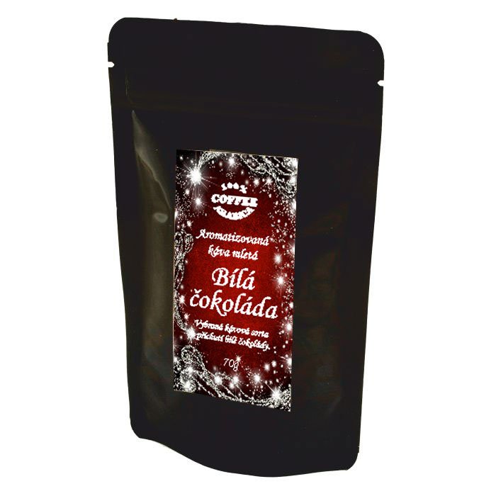 Složení: mletá káva 100% Arabica, aroma bílá čokoláda (2%)