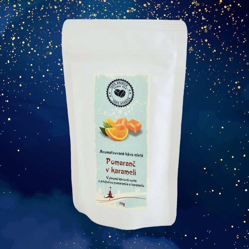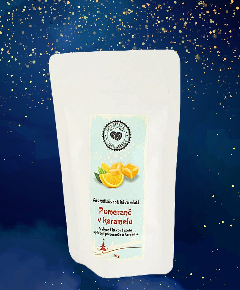 Složení: mletá káva 100% Arabica, aroma pomeranč (1%) a karamel (1%)