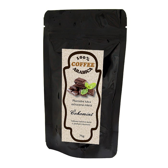 Složení: zrnková káva 100% Arabica, aroma čokoláda (1%) a máta (1%)