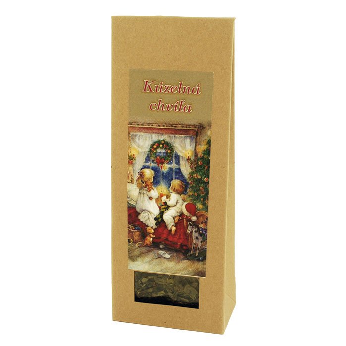 Přírodní dárková krabička Kouzelná chvíle s milým retro motivem dětí čekajících u okna na Santa Clause.