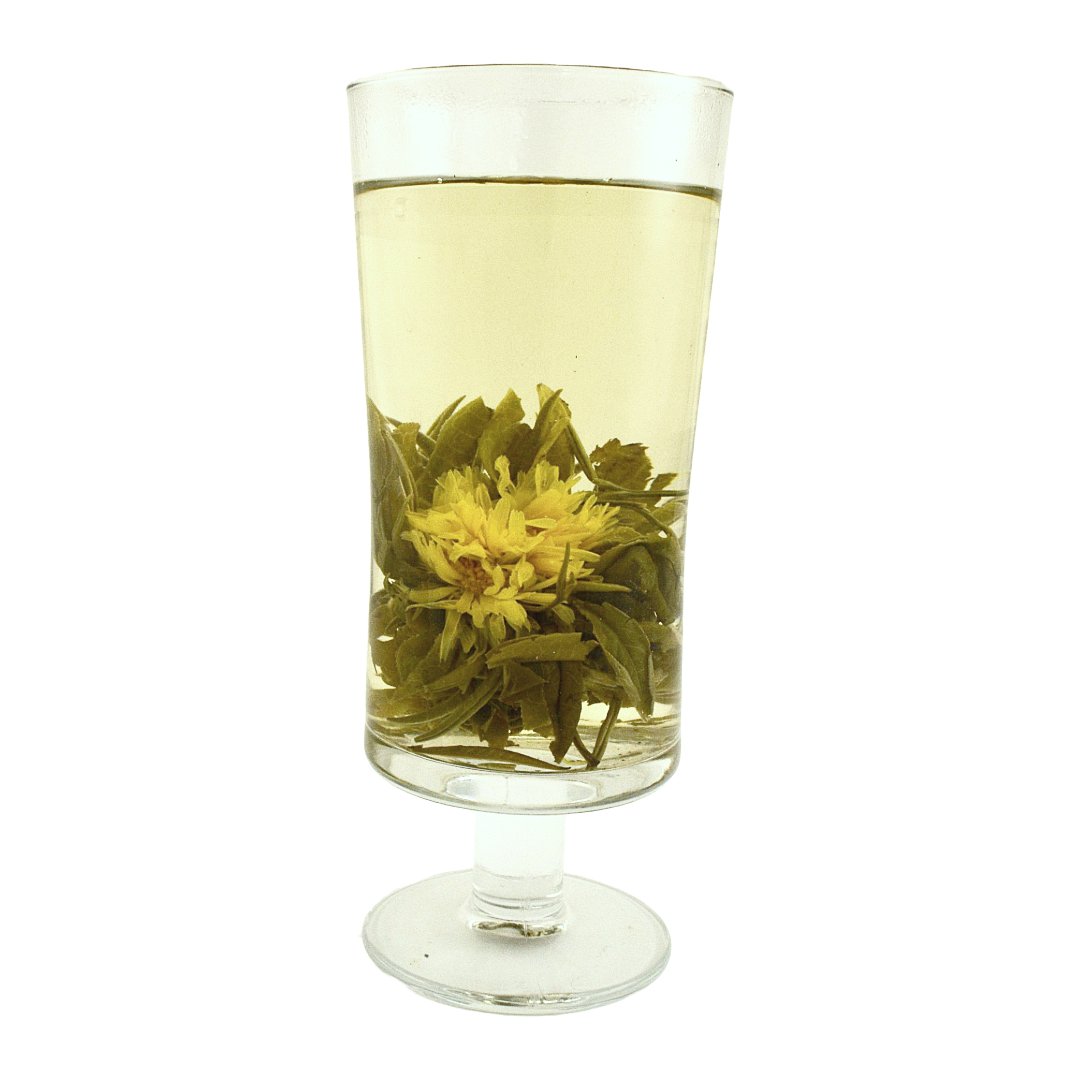 Pečlivě a tajemně zkombinovaný ručně vázaný zelený a bílý čaj, který se po zalití horkou vodou pomalu rozvine a odhalí zlatavý květ měsíčku dodávající nálevu jemné květinové tóny. Tento čaj je ideální pro speciální příležitosti nebo jako dárek pro všechny milovníky čaje.