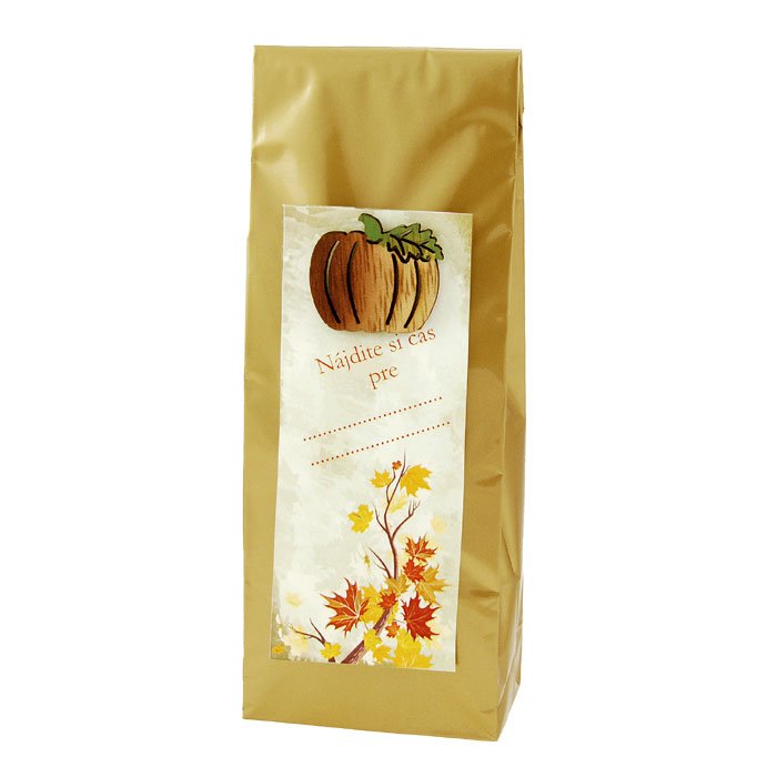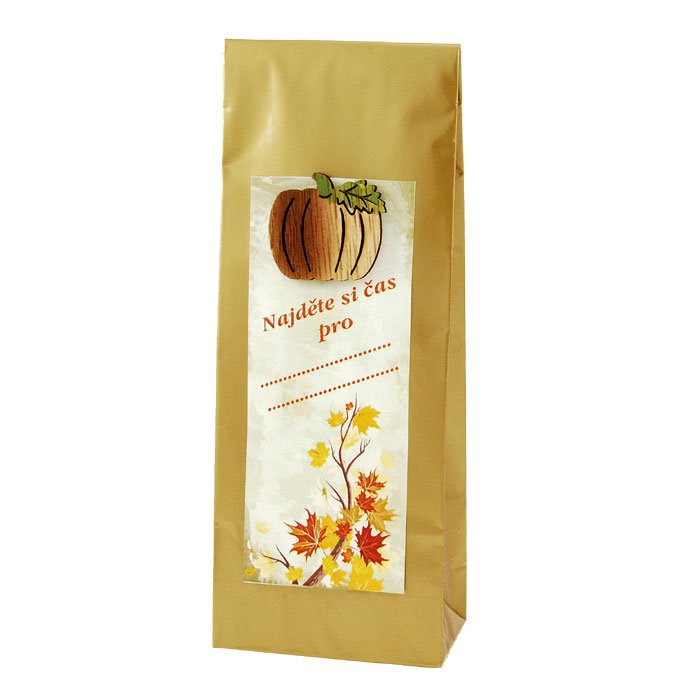 Dárkový čaj s dřevěnou dekorací s podzimním motivem.