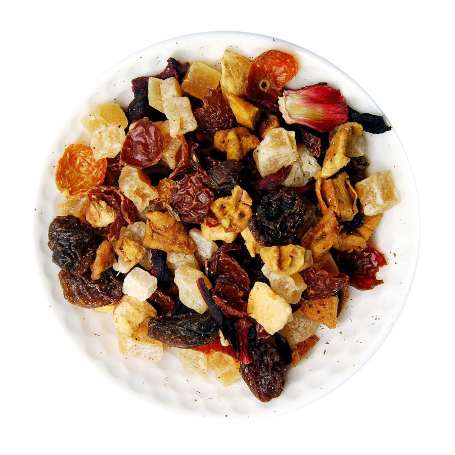 Untitled-7Složení: jablko, ibišek, papája, ananas, mango (mango, cukr), rozinky (rozinky, slunečnicový olej), šípek, aroma