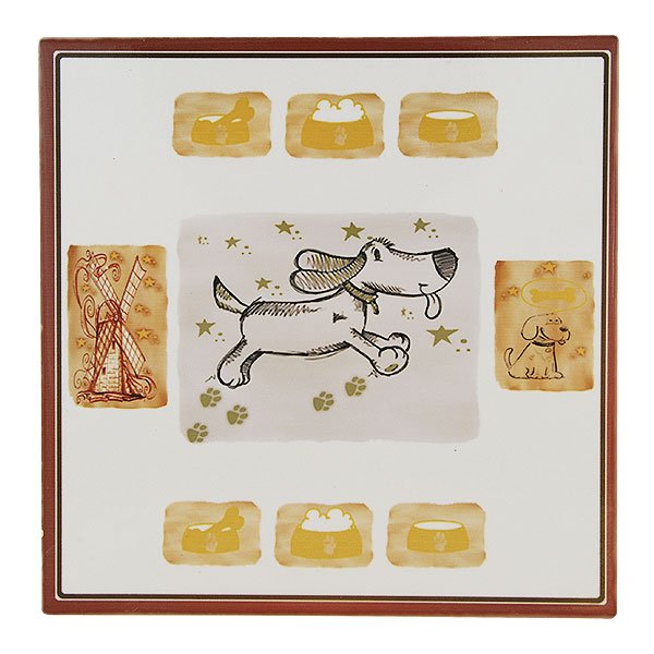 Keramický podtácek s motivem psíka, má protiskluzové korkové dno a je vhodný pod teplé i studené nápoje.