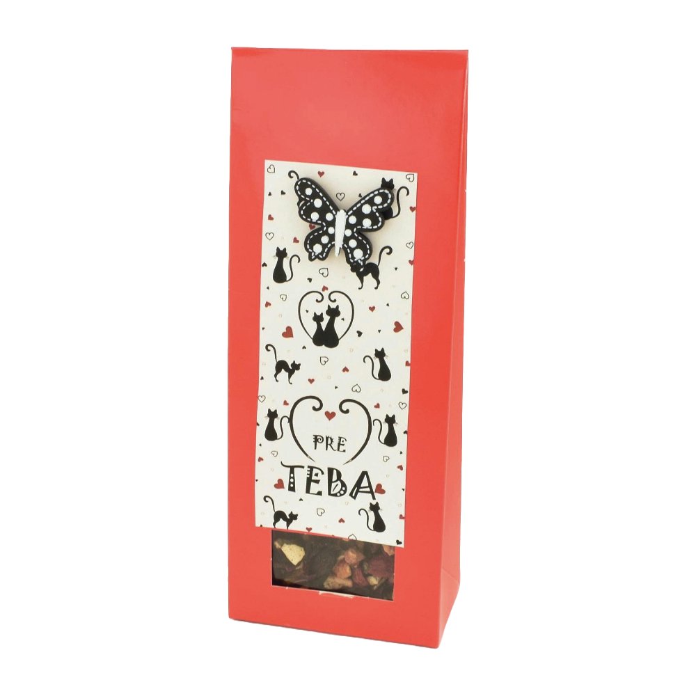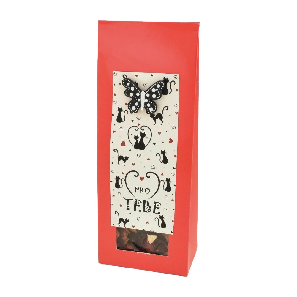 Dárková krabička s motivem zamilovaných koček a dekorací tečkovaného motýlka.