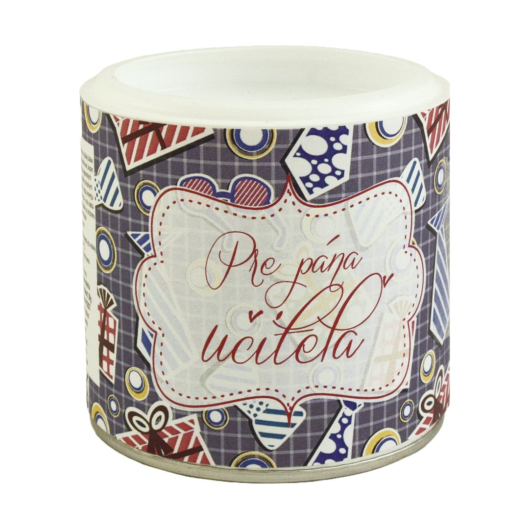 Vkusná dárková dóza s elegantním motivem dárků a vázanek, která zaručeně potěší oblíbeného pedagoga.