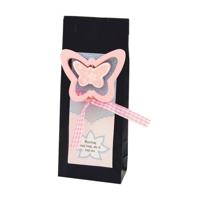 Dárkový čaj s dekorací motýlka.