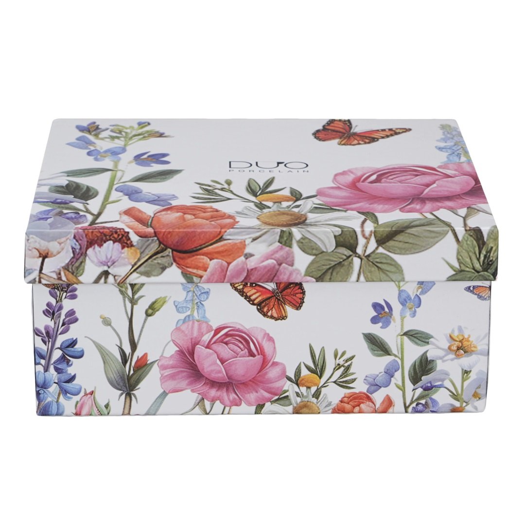 Sada dvou 270 ml šálků s podšálky s překrásným letním motivem rozkvetlých lučních květů a poletujících motýlů v intenzivních barvách.