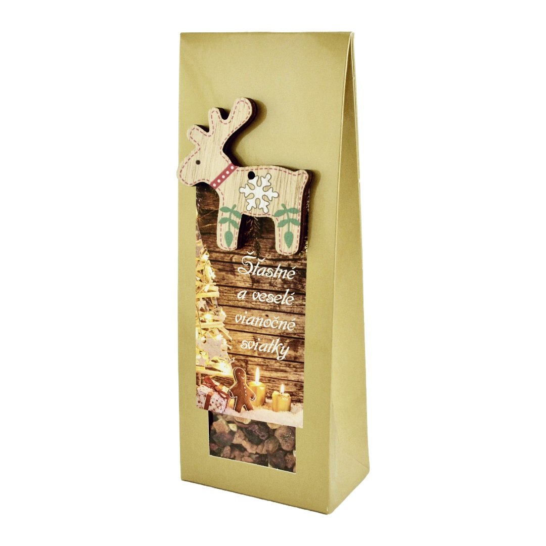 Dárková krabička s dřevěnou dekorací soba.