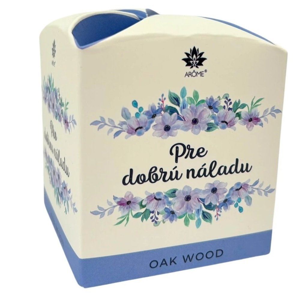 Dekorativní vonná svíčka ve skle s vůní dubové dřeva vytvoří doma příjemnou večerní atmosféru pro chvíle odpočinku a zároveň poslouží jako hezká dekorace. Vůně dubového dřeva má charakteristické aroma s lehce kořeněnými zemitými tóny. Nádech vanilky a karamelu je typický pro dubové sudy používané při stárnutí alkoholu, jako whisky nebo víno.