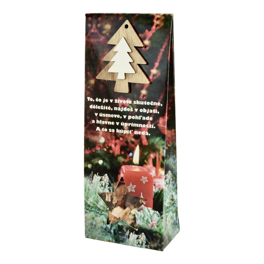 Dárková krabička s dřevěnou dekorací hvězdičky / stromečku.Motiv dekorace se… Více