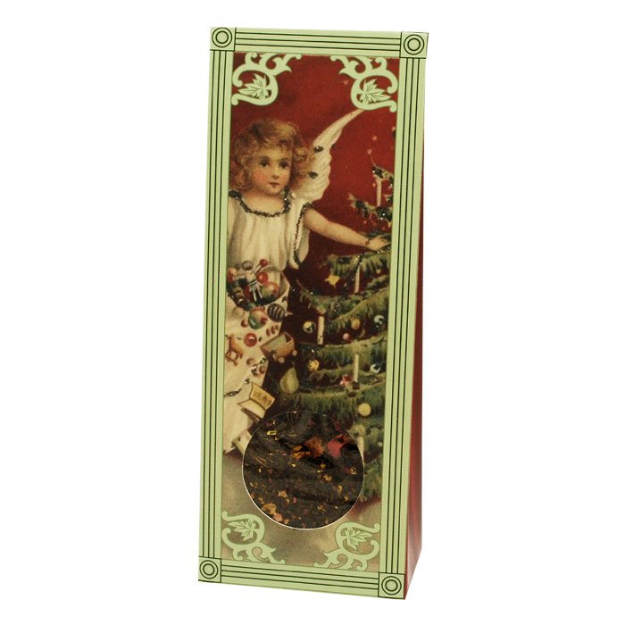 Dárková krabička Vánoční nostalgie s roztomilým retro motivem anděla zdobícího vánoční stromek.