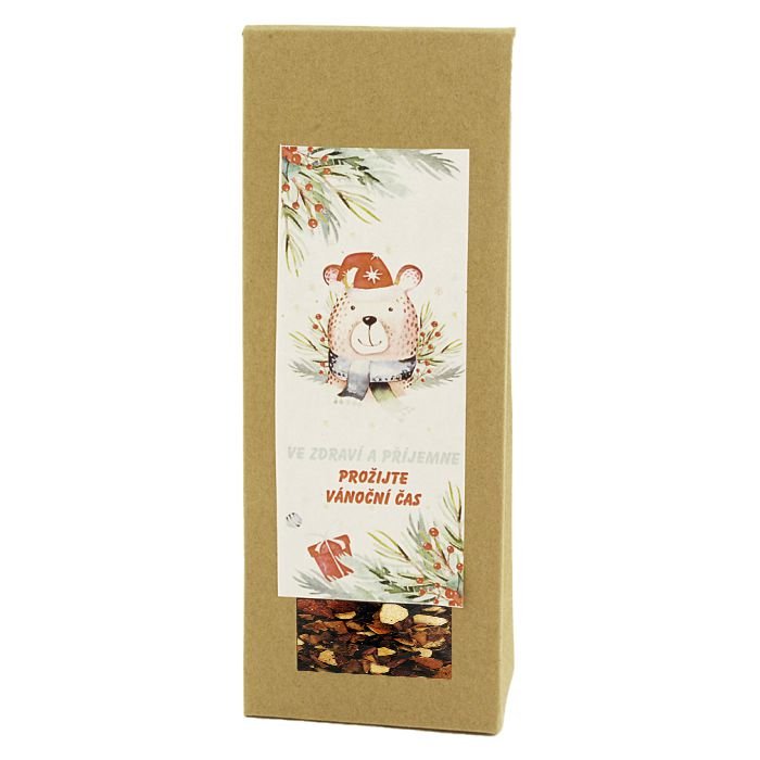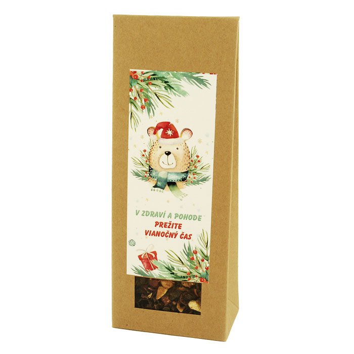 Přírodní dárková krabička s roztomilým vánočním motivem medvěda.