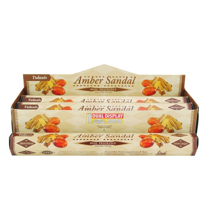 Tradiční vonné tyčinky s intenzívní vůní jantaru a santalového dřeva z prémiové řady Dual Fragrance značky Tulasi.