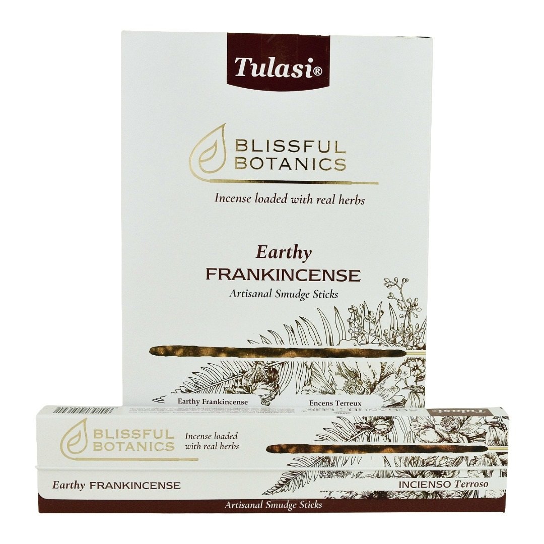Vonné tyčinky Zemité Kadidlo z prémiové řady Blissful Botanics značky Tulasi ztělesňují klid a relaxaci a jsou ideální pro meditaci, posílení vaší duchovní cesty či oživení vaší aury.