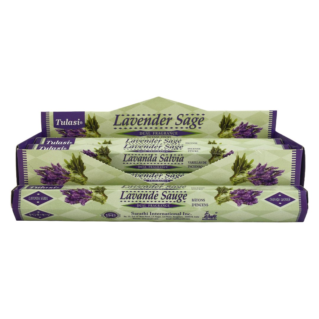 Vonné tyčinky s příjemnou květinově-bylinnou kombinací vůní levandule a šalvěje z prémiové řady Dual Fragrance značky Tulasi.