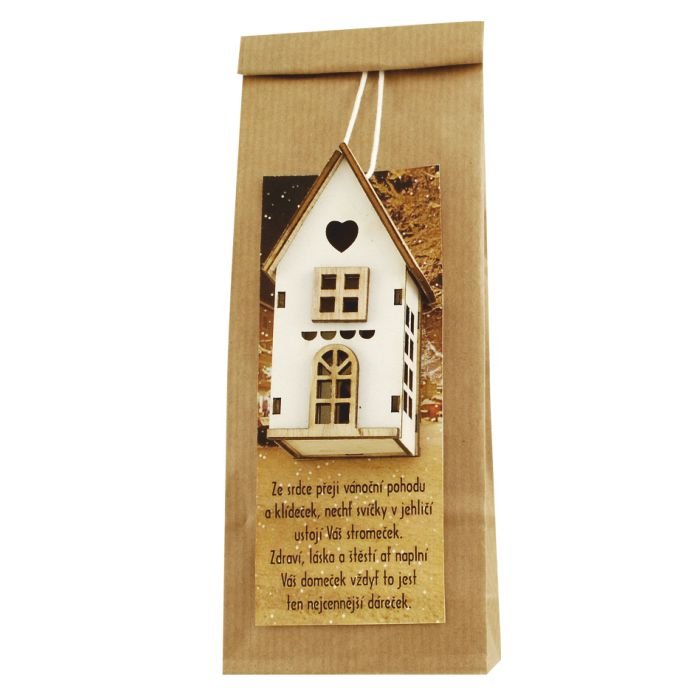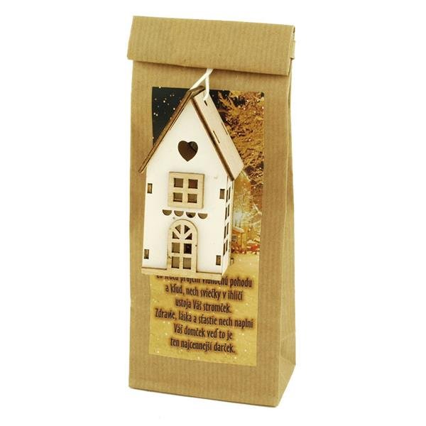 Dárkový čaj s dekorací domku.
